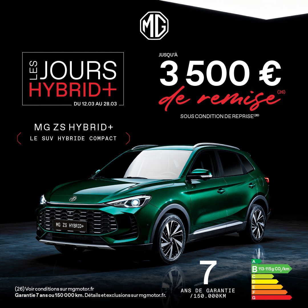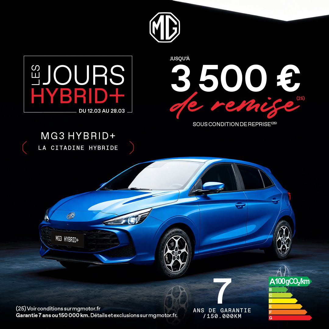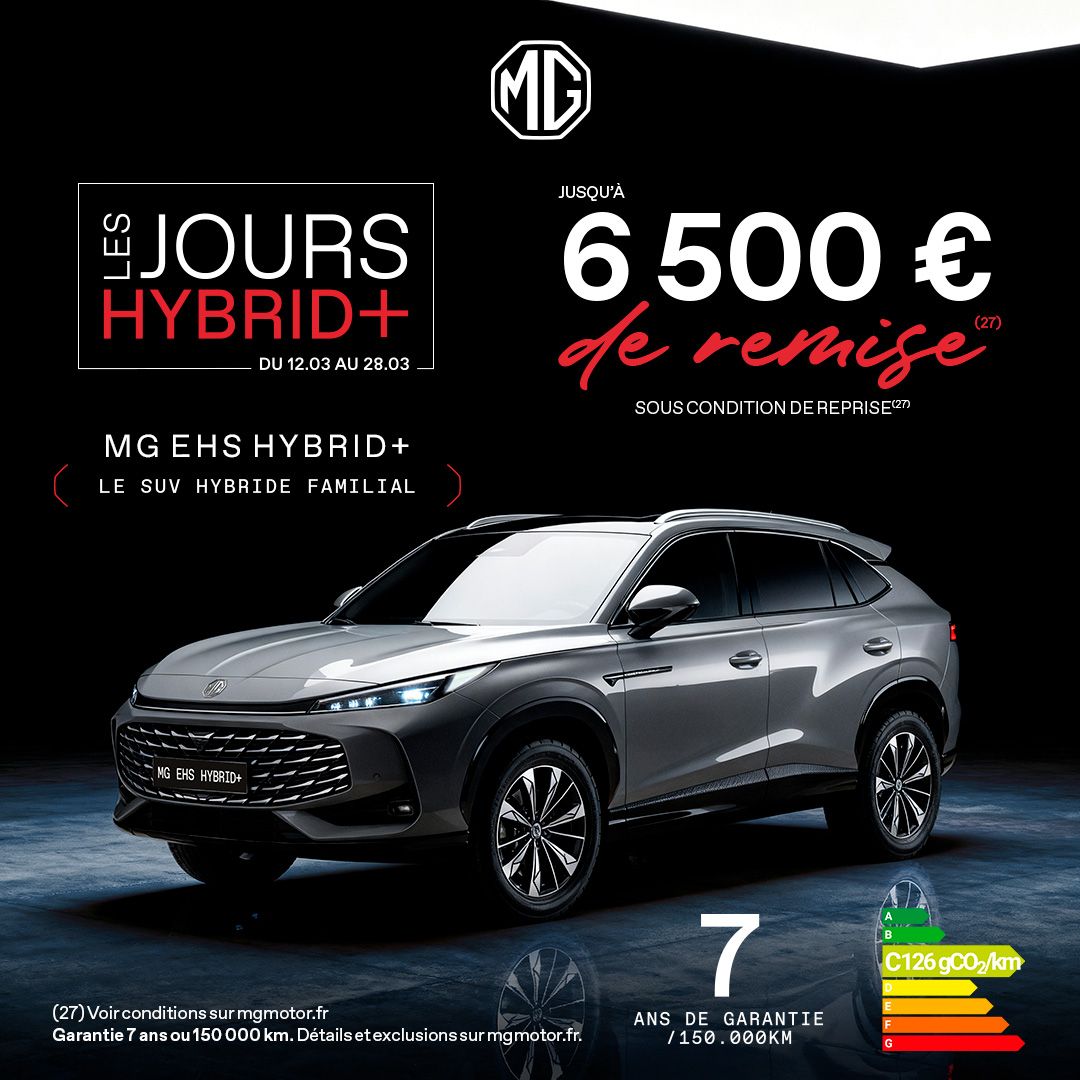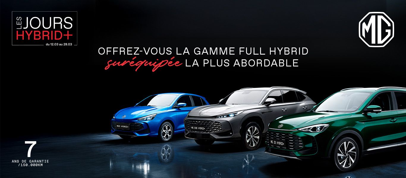 Les Jours Hybrid+ sont l’occasion idéale de profiter d’offres exclusives sur une large sélection de modèles MG. Design, technologie, électrification et équipements de série généreux : découvrez une gamme pensée pour répondre à toutes vos envies de mobilité.